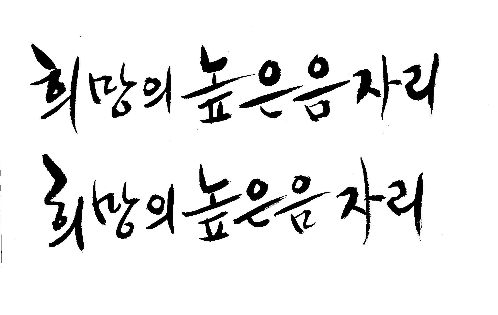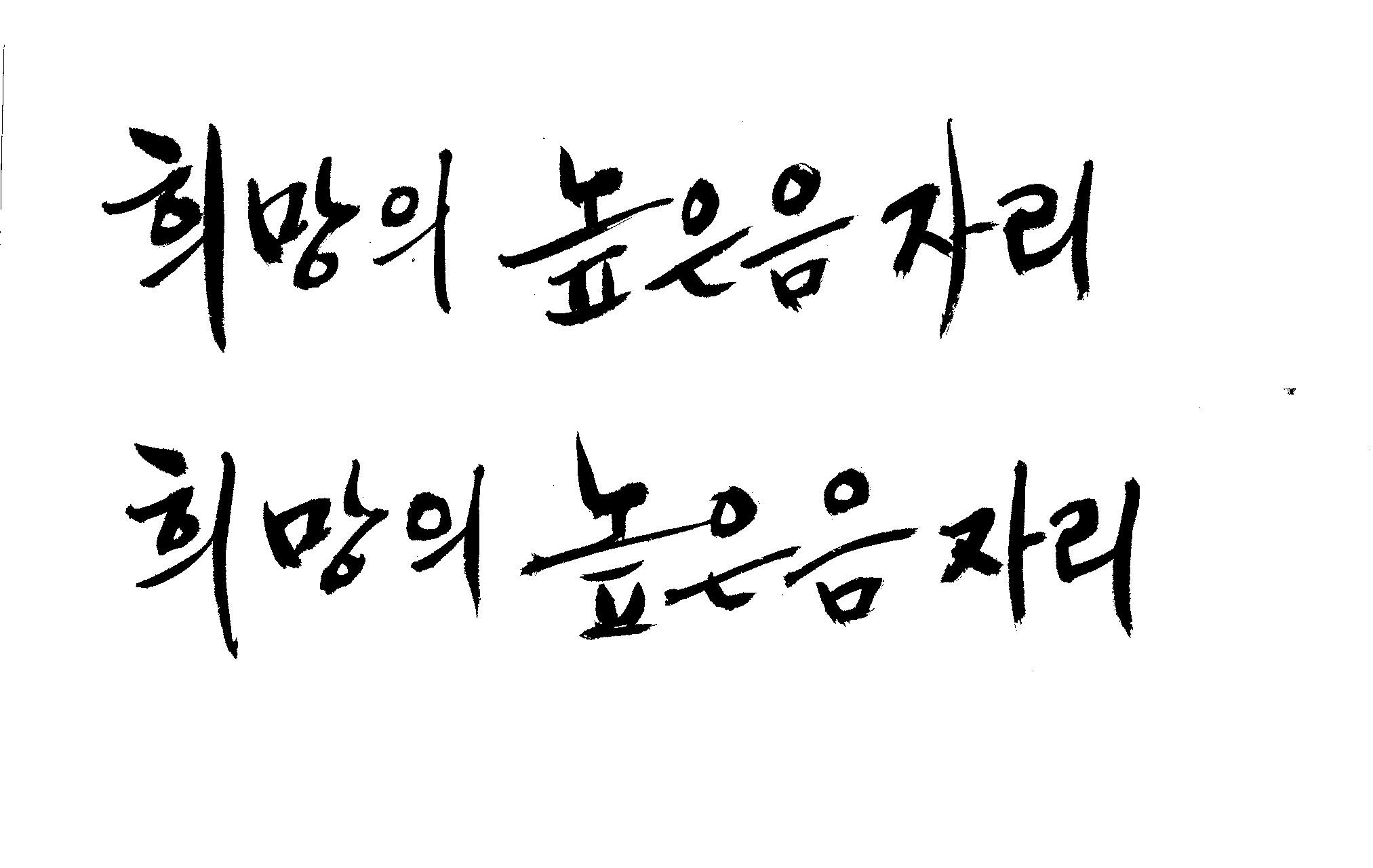 저도 캘리좀부탁이요 ^^;; 김철호 일반 0 6409 2009.01.14 10:59 > > > > > 희망의 높은음자리 > > > > 감사합니다 ^^ 꼭부탁드려욧 ㅎㅎㅎ > > > > 좋은 글이라서 신경썼는데 > 만족할 만큼 않나왔네요.. > 유용하게 쓰시길... >